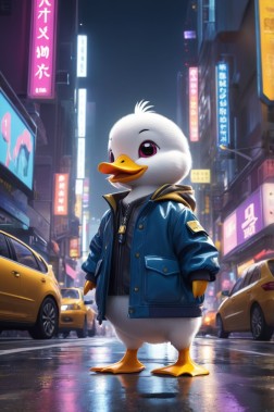 One day, a storm came. The winds roared, the waters churned, and the young duck found himself swept away from his cozy pond, lost in the vast unknown. He landed in a place unlike any other—a bustling city, where humans rushed everywhere, their eyes glued to strange glowing rectangles. The duck waddled through streets, dodging feet, learning the ways of the world. He saw laughter, he saw struggle, and he saw the true complexity of life.
